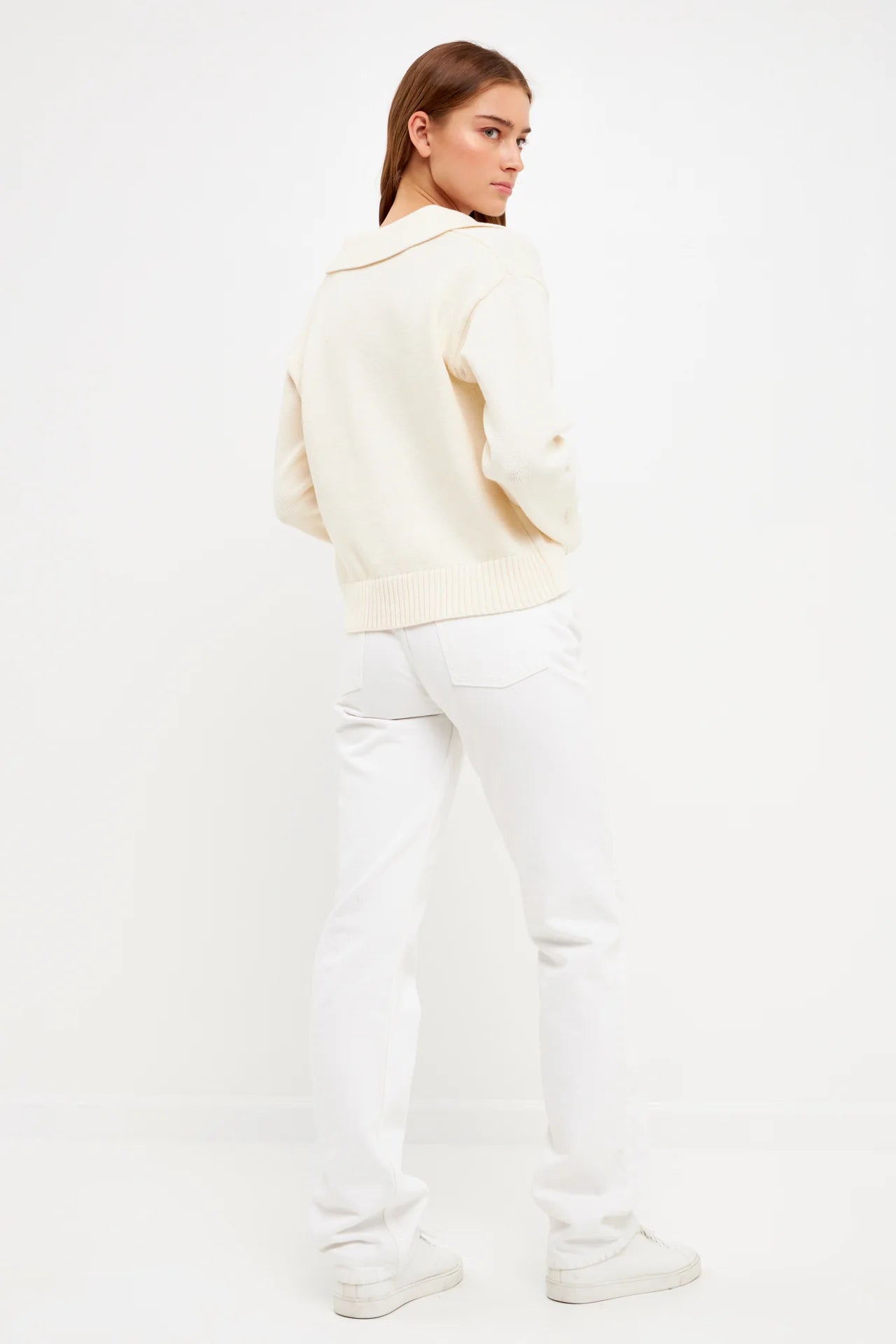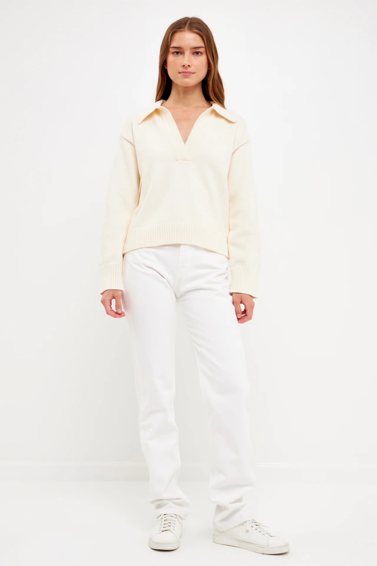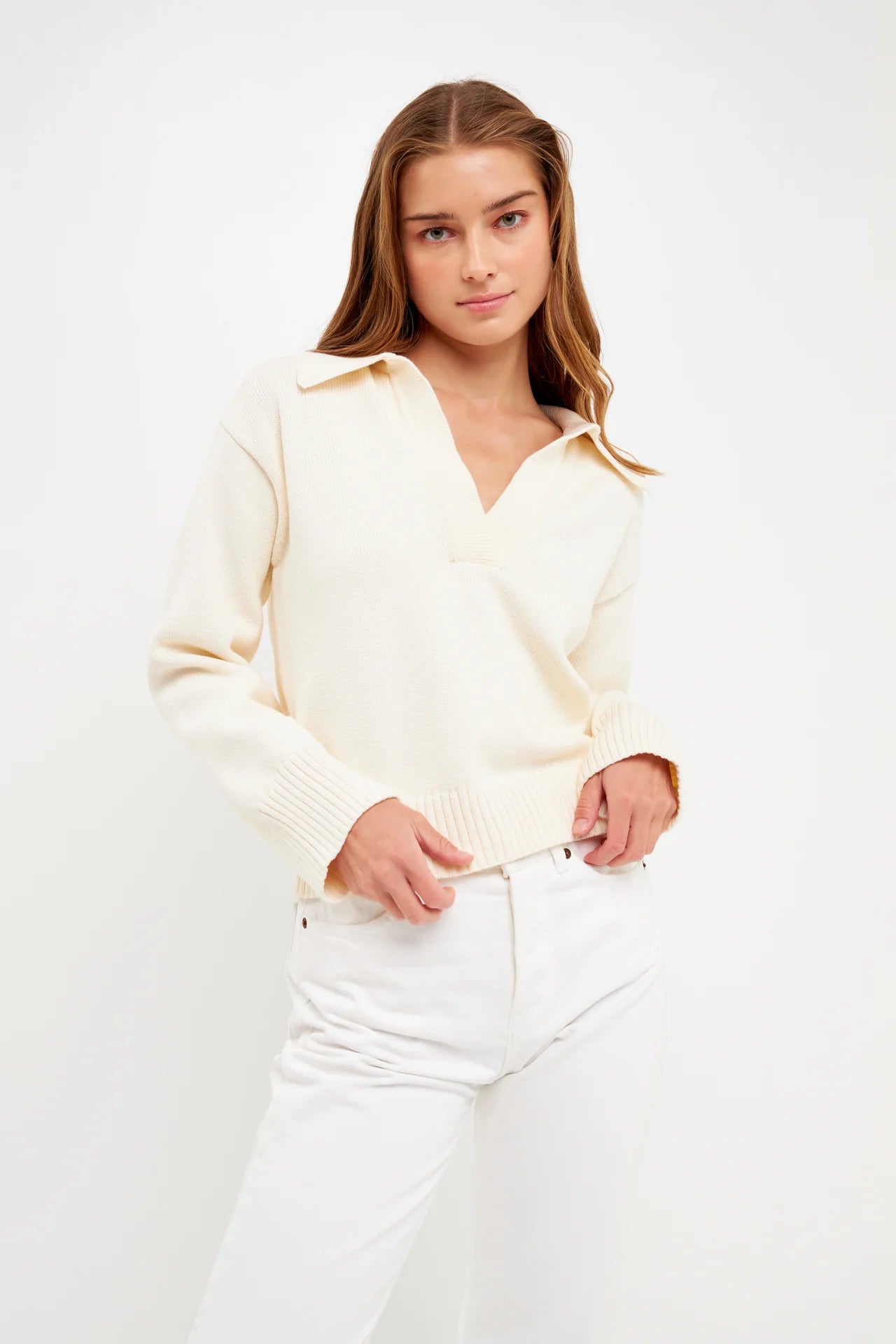 English Factory brand - Ivory sweater with a soft knit feel and folded over v-neck collar!!
